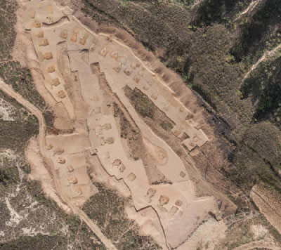 这是在寨峁梁遗址考古发掘出的以山峁为分布中心的房址遗址群(2014年12月16日摄)。 1月22日,陕西省考古研究院通报,在陕西榆林市榆阳区安崖镇房崖村,距离我国史前最大古城神木石峁古城遗址南方约20公里处,发现一处相当于龙山文化中晚期的聚落“寨峁梁遗址”,其时代、建筑形制和器物类型等特征跟石峁古城具有明显关联,诚如聚邑成都般地构成了石峁古城的“卫星城”。