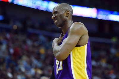 经过核磁共振检查,洛杉矶湖人队当家球星科比-布莱恩特被确诊为右肩膀旋转袖肌腱撕裂。湖人队同时宣布科比将返回洛杉矶,并将接受队医的进一步的检查,他也将缺席湖人客场挑战马刺的比赛。科比是在22日与鹈鹕的比赛中肩膀受伤的。当时比赛进行到第三节还剩4分14秒,科比在一次沿底线突破后的双手扣篮过程中不慎肩膀肌肉撕裂。